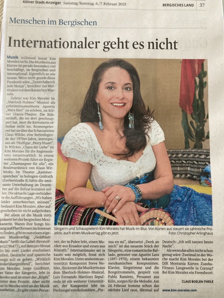 Die in Mexiko City geborene Kim kam schon auf ihrem Schulweg täglich am Haus von Frida Kahlo vorbei und liess sich von dieser starken Frau inspirieren. Nach der Ausbildung in klassischem Ballett und Musik tanzte und tourte sie als Solistin in den Schauspielhäusern dieser Welt. In Köln gelandet, choreografierte sie ihre ersten Musicals und veröffentlichte ihre ersten eigenen Lieder. Heute ist Kim als vielseitiges Talent international bekannt. Sie ist jetzt auch in Köln zuhause.