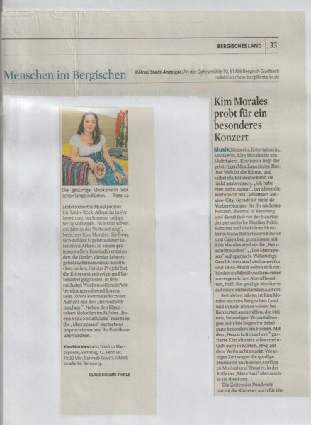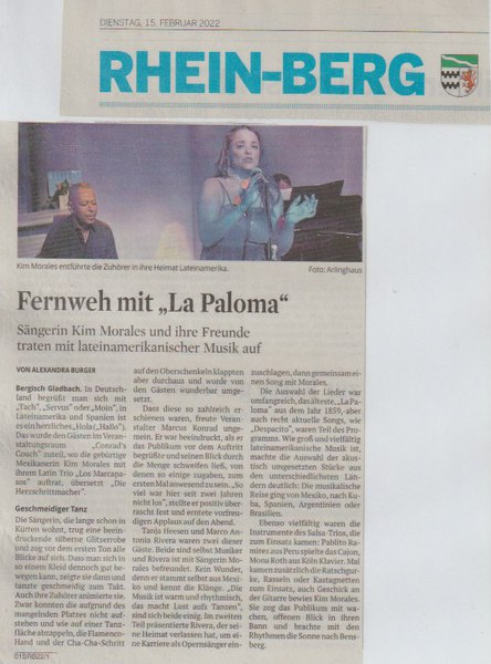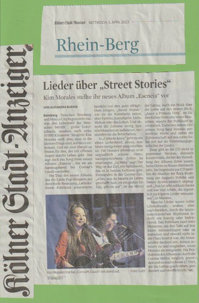 Latin Rock Fiesta: Tanz, Songs & Guitarrenpower. Live. Erlebe die “Latin Rock Fiesta” – ein energiegeladener Abend voller mitreißender Gitarrenklänge, Tanz und Lebensfreude! Kim Morales bringt ihre eigenen Songs sowie bekannte Latin-Rock-Hits auf die Bühne und erzählt spannende Geschichten aus der mexikanischen Kultur. Tanze, singe und genieße die mitreißenden Rhythmen bei einer unvergesslichen Nacht voller guter Laune und Livemusik. Ein Abend, der dich zum Lachen und Tanzen bringt – sei dabei!